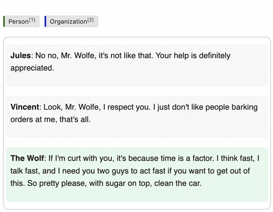 • Labels: Currently includes “Person” (green) and “Organization” (blue).